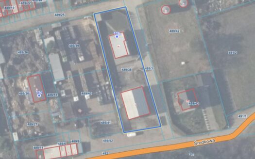 Nieruchomość ogrodzona, o pow. 1201 m2 zabudowana : – budynek murowany o pow. 92,33 m2 o przezn. biurowo-administrac. z częścią socjalną. Rok bud. 2015. M ...