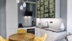 Lokal został urządzony w nowoczesnym stylu. Ze względu na wysokość sufitu 3,8m powstała dodatkowa powierzchnia z antresolą 12 m2,( wysokość 168m) która stanowi dodatkową przestrzeń w postaci sypialni i garderoby. Antresola została częściowo przeszklona i wyposażona w zasłony, które zapewnią Ci więcej intymności.