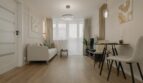 Mieszkanie położone jest w dzielnicy świetnie skomunikowanej z całym Wrocławiem – w zasięgu kilku minut znajdują się zarówno przystanki tramwajowe (100m), jak i autobusowe (50m). W bezpośrednim otoczeniu dostępne są wszystkie udogodnienia codziennego życia: sklepy, punkty usługowe, szkoły, przedszkola i żłobki. Lokalizację dodatkowo wyróżnia bliskość Sky Tower (600 m) oraz Rynku (2,5 km). Okolica jest zielona i spokojna.