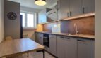 Kuchnia – duża lodówka z zamrażarką, piekarnik, mikrofalówka, płyta indukcyjna, zmywarka, pojemna zabudowa kuchenna, stół z dwoma krzesłami, wyposażenie kuchenne (małe AGD, komplet talerzy, sztućców, kubków itd)