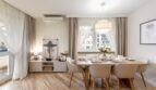 – duża kuchnia z zabudową na wymiar, pełne AGD oraz pojemna, przeszklona witryna z oświetleniem LED