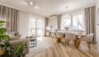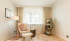 Wnętrza zostały starannie odświeżone — wykonano malowanie ścian farbami Flugger oraz cyklinowanie jesionowego parkietu. Całość uzupełniają pełne, drewniane drzwi Porta, kuchnia w zabudowie na wymiar oraz wyposażenie meblowe salonu i pokoi. Mieszkanie sprzedawane jest z wyposażeniem widocznym na zdjęciach, z wyłączeniem elementów home stagingu.