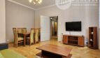 Salon – sofa rozkładana, stolik kawowy, stół obiadowy + 6 krzeseł, szafka RTV, telewizor.