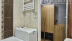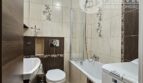 Łazienka – wanna z prysznicem, pralka, szafka z lustrem, zabudowa łazienkowa.