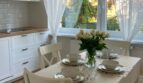 Kitchen (12m2): spacious and modern kitchen, fully equipped – new appliances (fridge, dishwasher, oven, cooker) together with dining area (table, 4 chairs)
