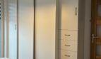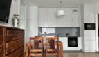 – The apartment is fully furnished and was designed for the owner’s own use, with great attention to the quality of materials and functionality of the space. Custom-made furniture maximizes the usable area. New kitchen furniture, high-class household AGD, wooden furniture (table, chairs), additionally a sofa, armchair, chests of drawers, and TV. The bathroom features a new shower, washing machine, and automatic dryer. The bedroom has a custom-made wardrobe and a new double bed. The apartment is equipped with high-quality air conditioning in both the living room and the bedroom. A large terrace is accessible from both the living room and the bedroom.