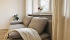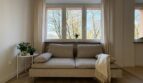 Okna z salonu i kuchni wychodzą na zadrzewiony skwerek, dzięki czemu latem nie jest gorąco.