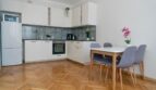 Z salonu można przejść do prawie 11 m2 kuchni wraz z jadalnią, która jest połączona z salonem , daje możliwość jej zamknięcia przez 4 – dzielne składane drzwi. Kuchnia wyposażona w pełni w sprzęt AGD oraz wyposażenie kuchenne.