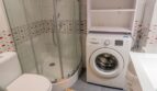 Łazienka o pow. 3 m2 To dobrze rozplanowana przestrzeń, w której znajdują się : prysznic, umywalka, pralka, WC oraz szafki na kosmetyki.