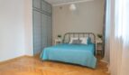 Sypialnia duża ma prawie 17,5 m2. Ta cicha i spokojna przestrzeń zapewnia komfort wypoczynku. Duże okna na prawie całej długości ściany dają doświetlenie i poczucie przestrzeni. Duża sypialnia to ogromny atut tego mieszkania. Można w niej stworzyć naprawdę pokaźną, dobrze zorganizowaną przestrzeń na garderobę . Obecne umeblowanie sypialni stanowi łóżko szerokości 160 cm wraz ze stolikami nocnymi oraz duża liczba tradycyjnych szaf w zabudowie wnękowej.