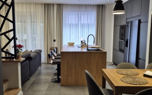 1. Parter – dwa duże pokoje, duży balkon, duża kuchnia, łazienka, w trakcie remontu, wymieniony piec gazowy dwufunkcyjny, nowe płytki i panele, okna PCW, sufity karton gips, nowe drzwi wewnętrzne.