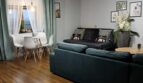 przestronny salon z otwartą kuchnią, przedpokój, łazienka z prysznicem, dwie duże sypialnie .
