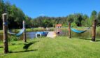 Na działce znajduje się mały plac zabaw, parę hamaków, są 2 miejsca na ognisko, a na stawie znajduje się pomost, z którego można łowić ryby i to bez żadnych ograniczeń i pozwoleń:). Dodatkowo na działce namiot 6m x 12m z ping-pongiem, minibilardem i pilkarzykami. We wrześniu 2025 zakupiona balia na drewno z hydromasażem. Działka jest ogrodzona, a wzdłuż płotu rosną częściowo duże świerki oraz kilka mniejszych świerków, tuj i innych drzewek również owocowych i krzaków zasadzonych w ostatnich latach.