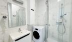łazienka wykończona z wysokiej jakości ceramiki i armatury, m.in kabina prysznicowa, pralko-suszarka.
