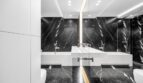 Sprzęt Miele, wykończenie marmurem i dębem.