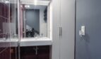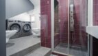 Łazienka z wc(7 m²) – z wybudowanym prysznicem, bidetem dużą umywalką, szafą na ręczniki, chemię i kosmetyki i miejscem na pralkę oraz suszarkę