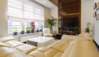 Salon (25 m²) – przestronny, z eleganckim sufitem napinanym oraz skórzanym narożnikiem z funkcją relaks