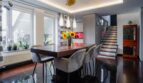 Jadalnia (21 m²) – z dużym stołem, komodą i barkiem, ozdobiona naturalnym kamieniem