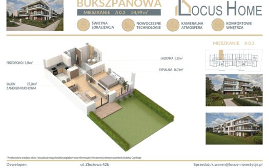 Cena w ogłoszeniu dotyczy mieszkania trzypokojowego na parterze budynku: M 0.3 – 77, ...