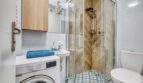 – – – – – pełna łazienka, a w niej: prysznic, WC, umywalka, pralka