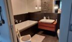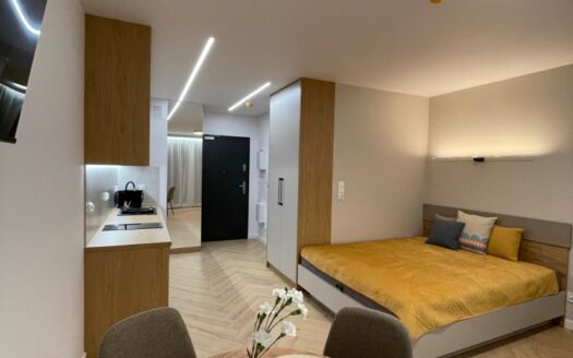 Mieszkanie w wysokim standardzie- drewniane podłogi, drzwi przesuwne, w łazienkach Kaldewei, Duravit, Roca, dekoracyjne grzejniki Terma, podgrzewane lustro, armatura Hansgrohe, Kludi , dwa telewizory Samsung, sprzęty w kuchni Siemens i Bosch, duża lodówka, blat kuchenny (łącznie ze zlewem) i wyspą z konglomeratu (odporne na wysoką temperaturę), kamienne parapety, drewniane żaluzje, podgrzewane podłogi w kuchni i łazience etc. Dużo miejsc do przechowywania dzięki zabudowom w przedpokoju, łazience i sypialni.