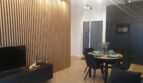 Apartament jest w pełni wyposażony. Przy wejściu do mieszkania znajduje się pojemna szafa. Aneks kuchenny posiada: lodówkę, zmywarkę, piekarnik z funkcją mikrofali, płytę ceramiczną wraz z okapem. Salon posiada telewizor z dostępem do TV kablowej. W sypialni jest wygodne łóżko 140×200 oraz bardzo pojemna szafa. W łazience została zamontowana kabina prysznicowa, duża ilość szafek mieszcząca kosmetyki oraz pralka.