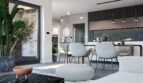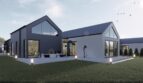 Każdy dom o powierzchni 147 m² został zaprojektowany w stylu nowoczesnej stodoły. Przemyślany układ pomieszczeń oddziela strefę dzienną od prywatnej, a wysokie sufity i duże przeszklenia zapewniają przestronność i naturalne światło. Na parterze znajduje się część dzienna z kuchnią, jadalnią i salonem, trzy sypialnie oraz łazienka. Dodatkowym atutem jest użytkowe poddasze – idealne na gabinet, pokój gościnny lub przestrzeń rekreacyjną.