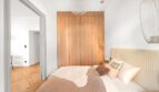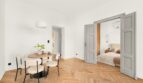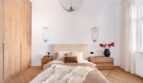 – przestronna sypialnia, do której prowadzą odrestaurowane, kamieniczne dwuskrzydłowe drzwi w kolorze szarym,