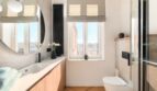 – wyposażona w prysznic, umywalkę, WC, podświetlane lustro, pralkę, wysuwany kosz na bieliznę oraz roletę wewnętrzną,