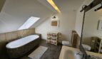 Piętro: powierzchnia około 125 m²: dwie sypialnie, łazienka z wanną i prysznicem (wspólna), sypialnia główna z garderobą i dedykowaną łazienką z wanną i prysznicem.