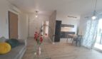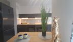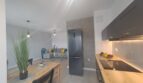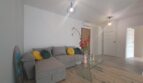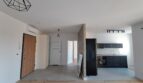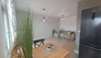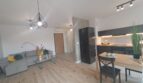 -jasny salon z kuchnią wyposażoną w AGD i z wyjściem na balkon