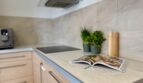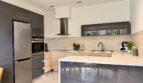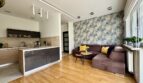 Kuchnia jest otwarta na salon i oferuje dużą ilość blatu roboczego oraz zabudowy. W mieszkaniu znajduje się także wiele praktycznych szaf, co znacząco podnosi komfort codziennego użytkowania