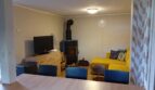 W salonie duży kominek i elektryczny rekuperator ścienny – poprawia wentylację