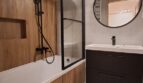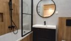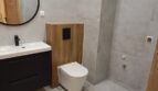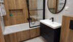 Podwieszany sufit w łazience. Podłoga z paneli winylowych.