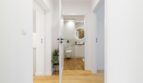 Duże okna oraz jasna kolorystyka wnętrz sprawiają, że mieszkanie jest bardzo dobrze doświetlone i daje poczucie przestrzeni. Starannie dobrane materiały wykończeniowe nadają wnętrzu ponadczasowy charakter.